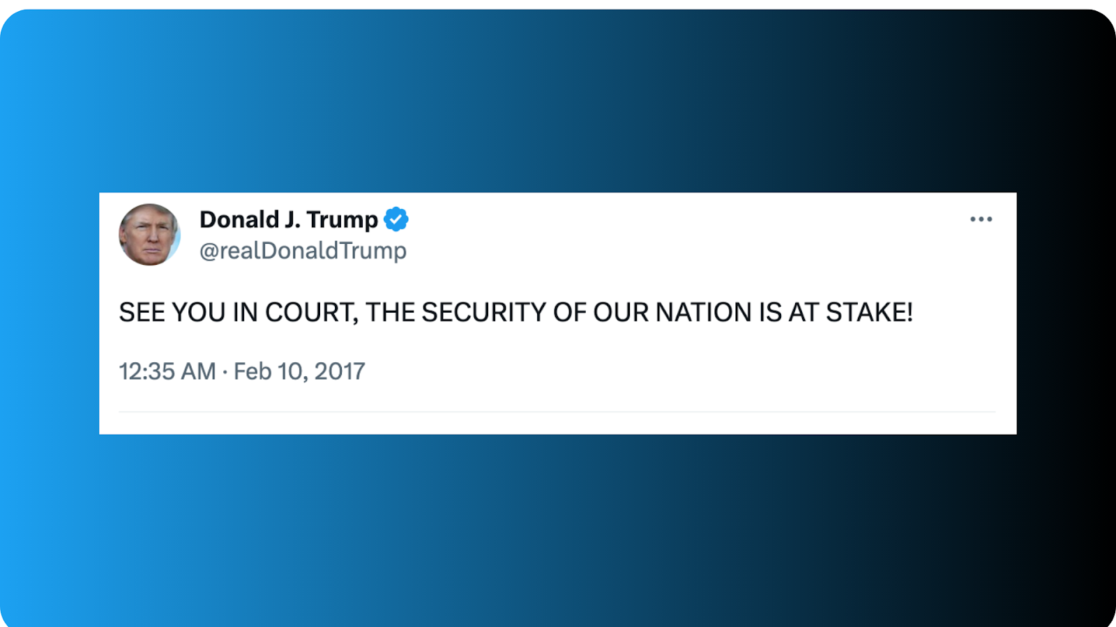 15- In 2017, he had a long fight in court because he used a special rule to make a rule about stopping people from seven Muslim countries from travelling in. He tried many times in court, but it didn't work out. Then, he posted a message on Twitter.