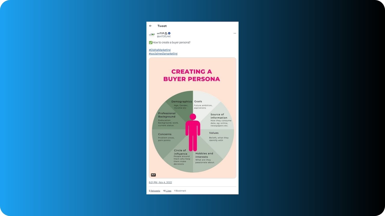 How will you get the attention of your target audience if you don’t know who they are? The first step is to have a deep understanding of your ideal customer. Create a persona with specific details, such as their: