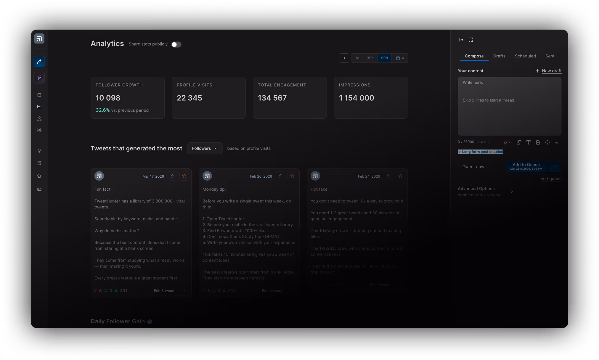 Start investing in data instead of guesses. Build an audience based on proven performance. Drive engagement by knowing exactly what your followers want. Let our analytics reveal your next viral hit and repurpose your top content for maximum impact.